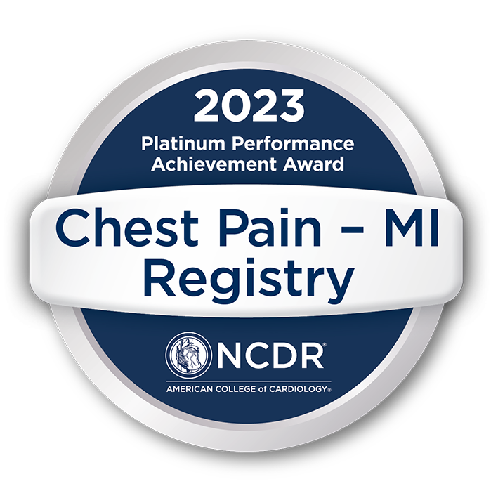 American College of Cardiology NCDR Chest Pain ̶ MI Registry Platinum Performance Achievement Award recognizes sustained, high level performance in quality of care.