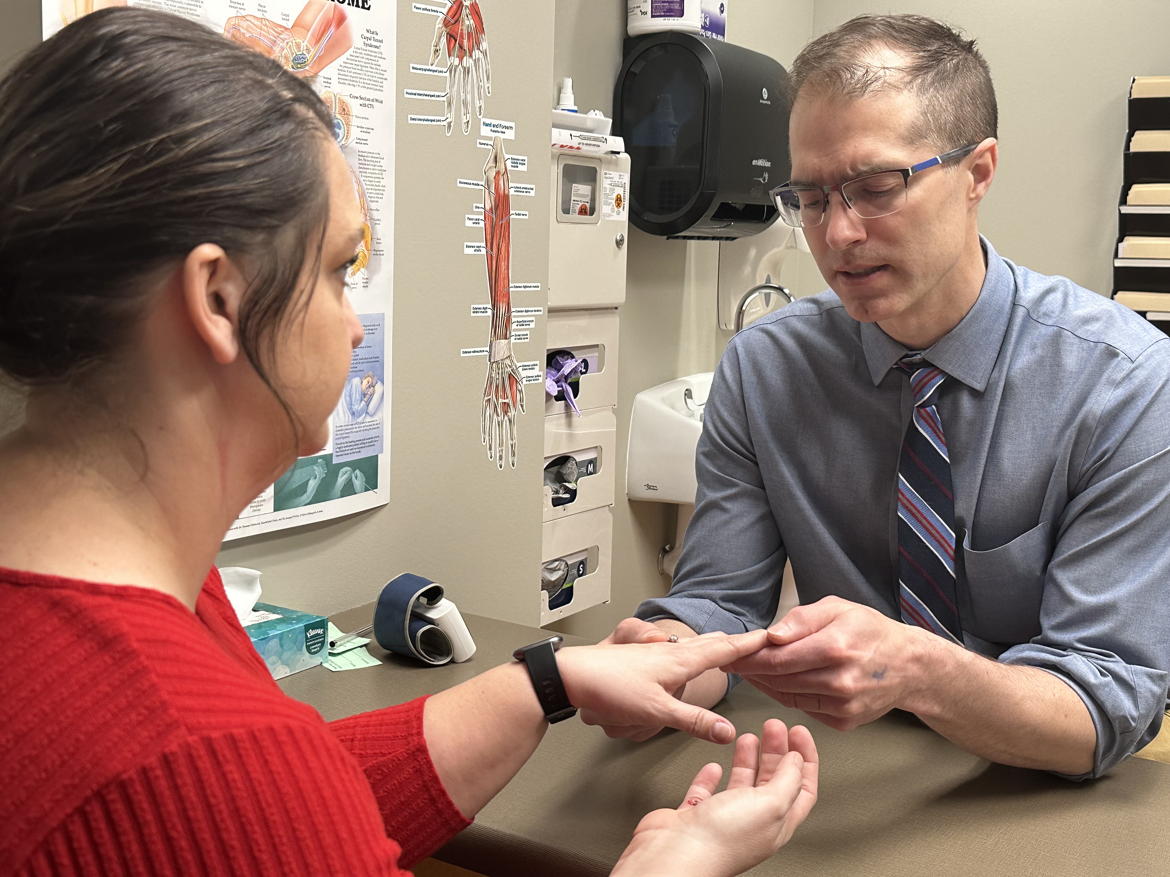 Upper extremity surgeon, Dr. Jesse Meaike with patient