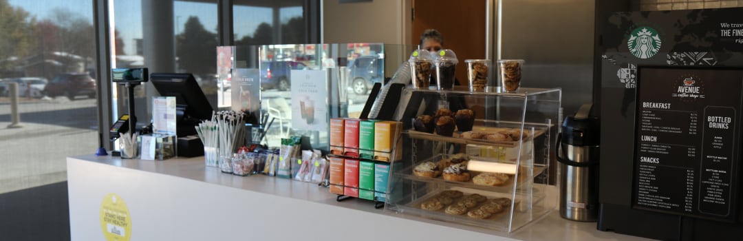 Located near the hospital's main entrance at our West Campus, you can enjoy a variety of hot and cold beverages, soups, salads, sandwiches, pastries, and desserts.